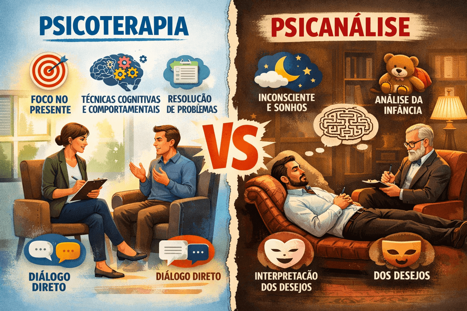 A principal diferença entre psicoterapia e psicanálise está na forma como o sofrimento emocional é compreendido e trabalhado.